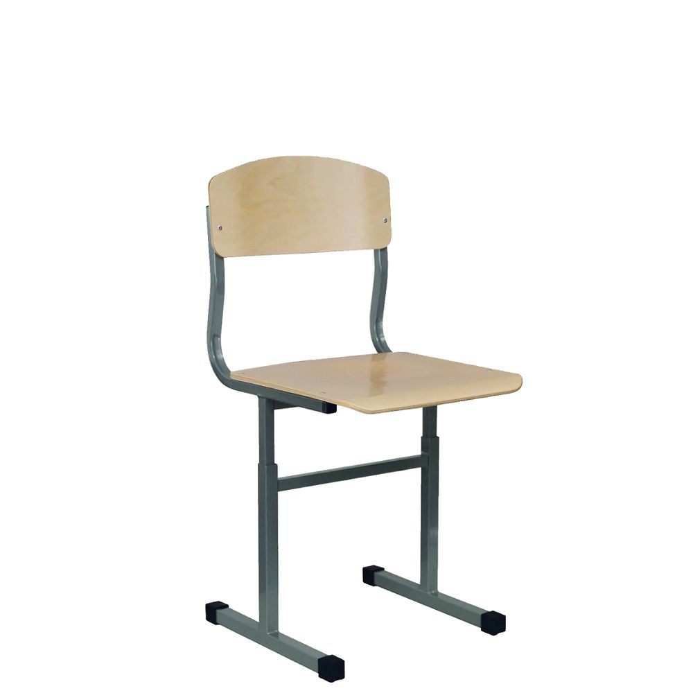 Стулья ученические серии «Бюджет» изготавливаются в соответствии с требованиями ГОСТ 22046, ГОСТ 11016. Спинка стула из гнутоклееной берёзовой фанеры 9 мм имеет анатомически правильную форму. Повторяет естественный изгиб и снижает нагрузку на позвоночник. На основании каркаса травмобезопасные пластиковые протекторы для защиты напольного покрытия от повреждений (по запросу могут комплектоваться фетровыми противоскользящими накладками). Каркас окрашен качественной и безопасной порошковой краской, прочной к механическим и химическим воздействиям. Изменение высоты каркаса происходит посредством регулировки двух телескопических стоек, с шагом 40 мм. Фиксируется с помощью 8-ми винтов М6х12 (по 4шт. с каждой стороны) в накатную резьбу.
