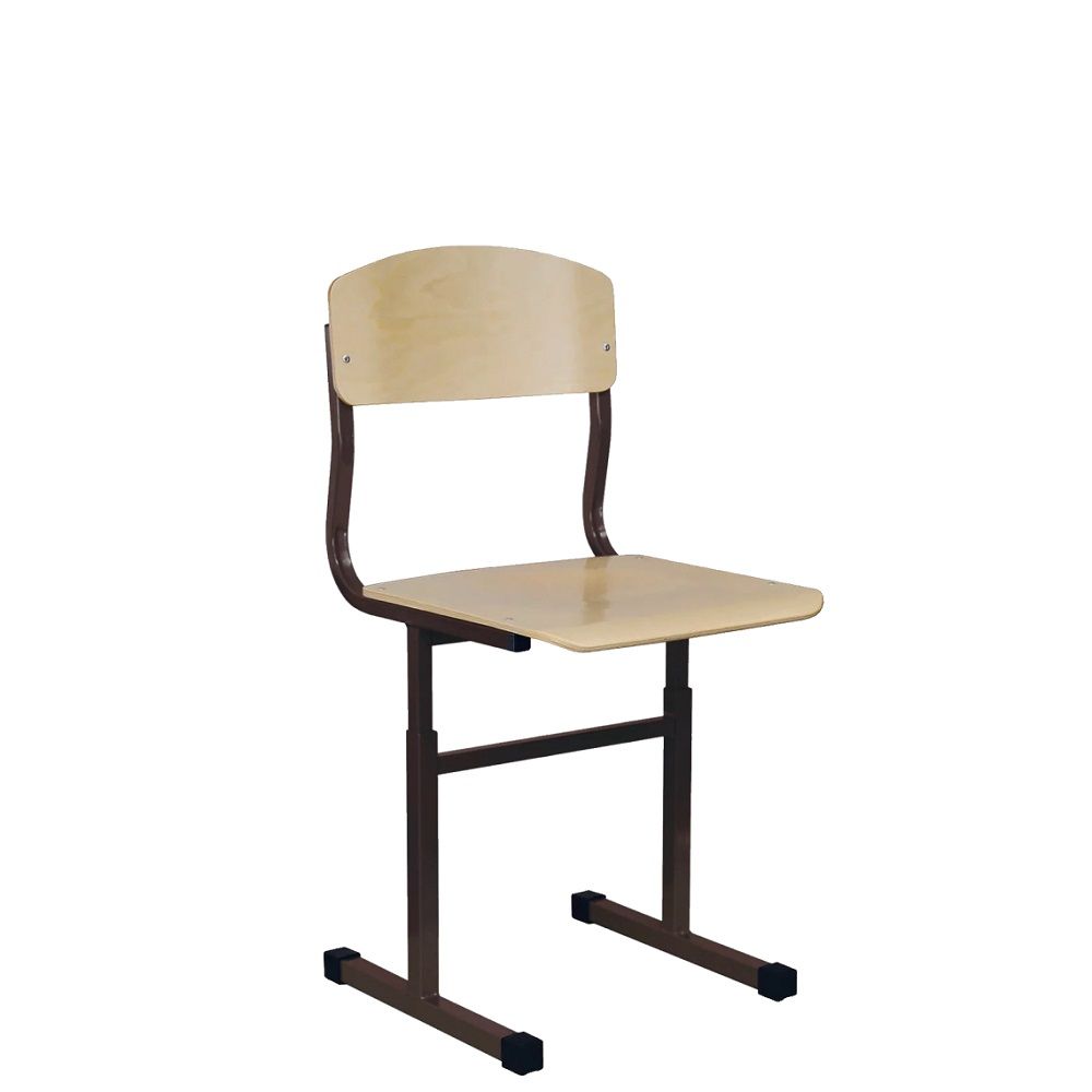 Стулья ученические серии «Бюджет» изготавливаются в соответствии с требованиями ГОСТ 22046, ГОСТ 11016. Спинка стула из гнутоклееной берёзовой фанеры 9 мм имеет анатомически правильную форму. Повторяет естественный изгиб и снижает нагрузку на позвоночник. На основании каркаса травмобезопасные пластиковые протекторы для защиты напольного покрытия от повреждений (по запросу могут комплектоваться фетровыми противоскользящими накладками). Каркас окрашен качественной и безопасной порошковой краской, прочной к механическим и химическим воздействиям. Изменение высоты каркаса происходит посредством регулировки двух телескопических стоек, с шагом 40 мм. Фиксируется с помощью 8-ми винтов М6х12 (по 4шт. с каждой стороны) в накатную резьбу.