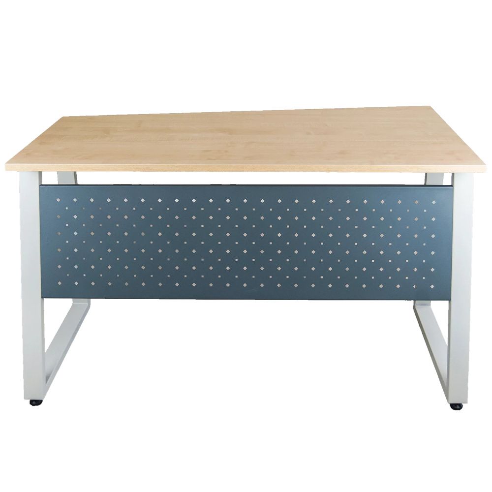 Столешница изготовлена из высокопрочного ЛДСП 22 мм, класс эмиссии Е-1. Торцы облицованы кромкой ПВХ толщиной 2 мм. Металлический экран с перфорацией выполняет функции жесткости каркаса и в сочетании со скрытыми креплениями, придает черту современности и технологичности.